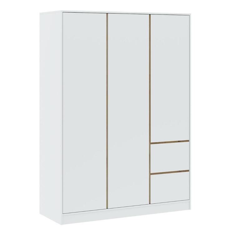 Třídveřová šatní skříň se dvěma zásuvkami je vyrobena z kvalitní LTD v barevném provedení bílá/dub artisan. Dodáváme v demontovaném stavu.CASA 85019