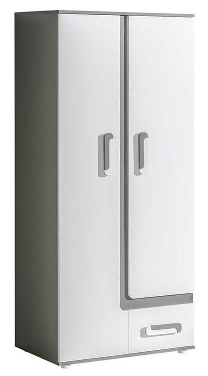 Dvoudvéřová šatní skříň APETTITA ze sektorové řady, která se vyznačuje netradičním zpracováním barev a originalitou úchytů. Tento styl nábytku zaujme každou mladší generaci. Skříň je vyrobena z kvalitní LTD desky hraněné ABS lištou. Korpus je v barvě šedé – antracit, dveře jsou bílé matné. Úchytky jsou v barevné kombinaci antracit/bílá. Uvnitř skříně je šatníková tyč, v dolní části je zásuvka. Sektorový nábytek APETTITA má široký výběr prvků, který Vám zaručí sestavit si dětský nebo studentský pokoj, ložnici či kancelář podle svých potřeb, přání a představ. Dodáváme v demontovaném stavu.CASA 23001