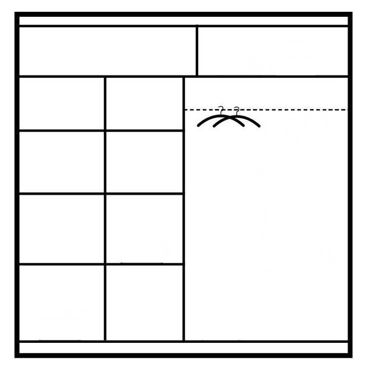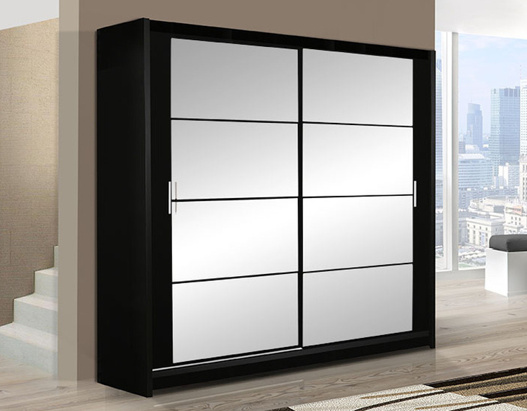 Šatní skříň s posuvnými dveřmi v moderním provedení. Korpus i dvířka jsou z kvalitního LTD v barvě černá. Skříň obsahuje praktické zrcadlo. Uspořádání polic viz. perokresba. Dodáváme v demontovaném stavu.CASA 31014
