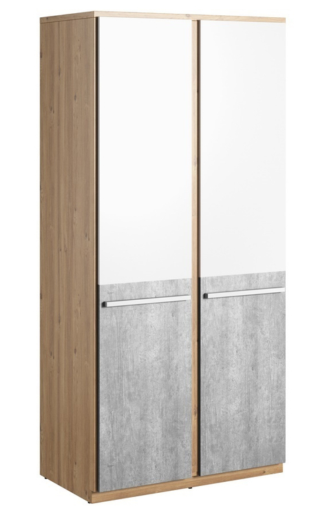 Šatní skříň dvoudveřová v moderním stylu. Korpus je vyroben z desky LTD v barvě dub nash, dvířka jsou vyrobeny z desky LTD v kombinaci barev šedá/bílá. Uvnitř skříně je šatní tyč a police. Dodáváme v demontovaném stavu.CASA 73034