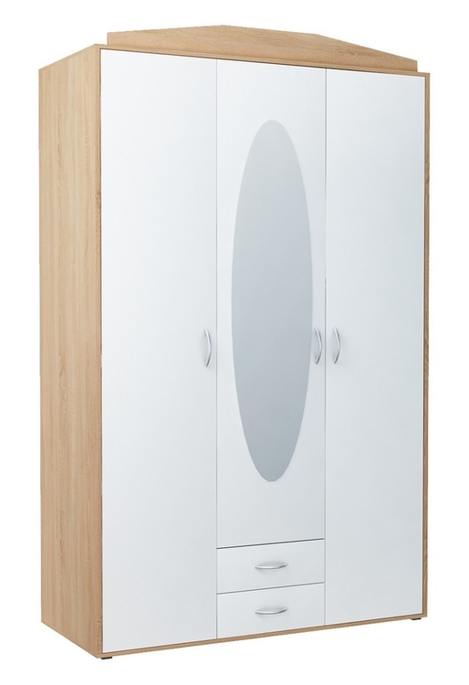 Šatní skříň GREACE se zrcadlem v elegantním a praktickém provedení. Korpus i dvířka jsou z kvalitní LTD. Korpus je v barvě dub sonoma, dvířka v barvě matné bílé. Uspořádání úložného prostoru skříně dle obrázku. Lamino je odolné vůči vysokým teplotám, poškrábání a nárazům, hraněné ABS páskou. Dodáváme v demontovaném stavu.CASA 53008