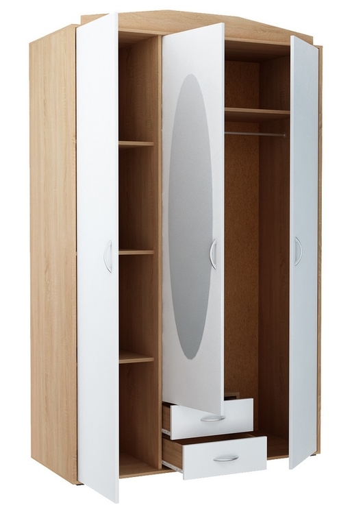 Šatní skříň GREACE se zrcadlem v elegantním a praktickém provedení. Korpus i dvířka jsou z kvalitní LTD. Korpus je v barvě dub sonoma, dvířka v barvě matné bílé. Uspořádání úložného prostoru skříně dle obrázku. Lamino je odolné vůči vysokým teplotám, poškrábání a nárazům, hraněné ABS páskou.... více informací o zboží