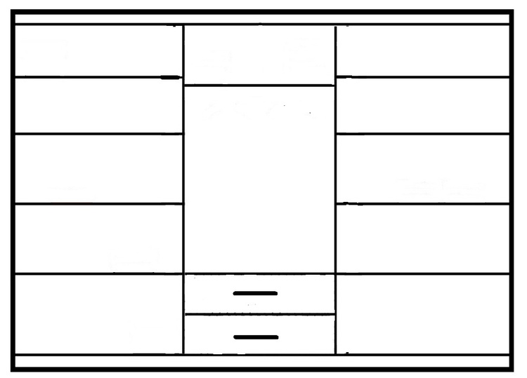 Šatní skříň se 3 posuvnými dveřmi v moderním provedení. Korpus a dveře z kvalitního LTD jsou v bílé matné barvě. Prostřední dveře jsou osazeny zrcadlem. Uprostřed dveří je dekor ze tří vodorovných čar. Uspořádání polic viz. menší obrázek. Hrany u skříně jsou ohraničeny ABS páskou a skříň má hliníkové pojezdy. Dodáváme v demontovaném stavu.CASA 73007