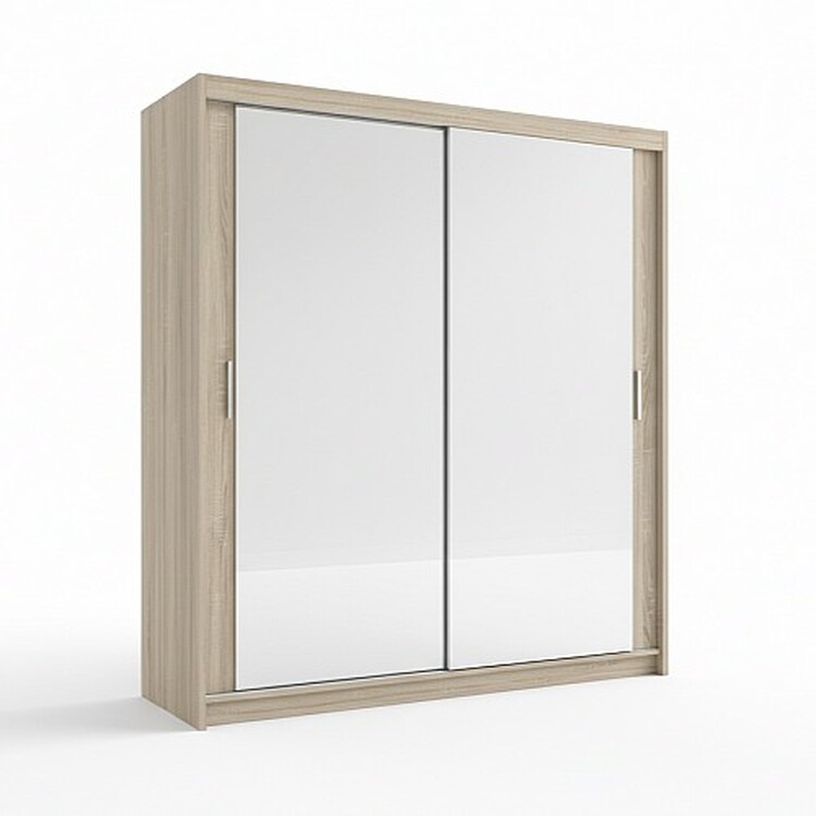 Elegantní šatní skříň Lux 203 se dvěma zrcadly je ideální volboupro prostorné pokoje, kde chcete skloubit funkčnost a estetiku. Její posuvnédveře šetří prostor a poskytují příjemný, plynulý chod, zatímco dvěvelká zrcadla na čelní straně dodávají interiéru světlo a opticky hozvětšují. Díky nim není potřeba samostatné zrcadlo v místnosti —vše máte na dosah při oblékání.