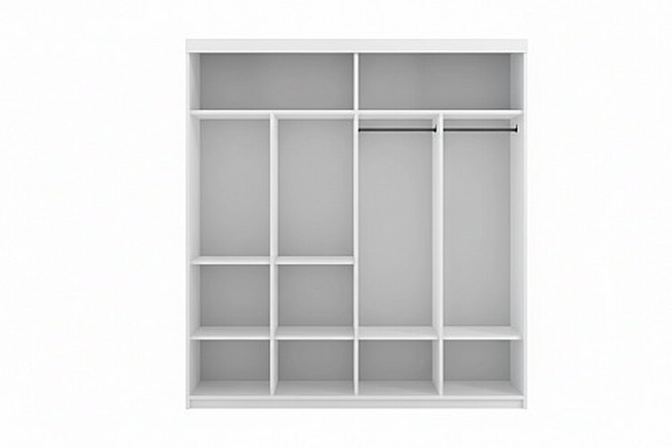 Vnitřní uspořádání je navrženo tak, aby poskytovalo praktické apřehledné řešení pro uložení všeho oblečení a doplňků. Najdetev něm police, šatní tyče.