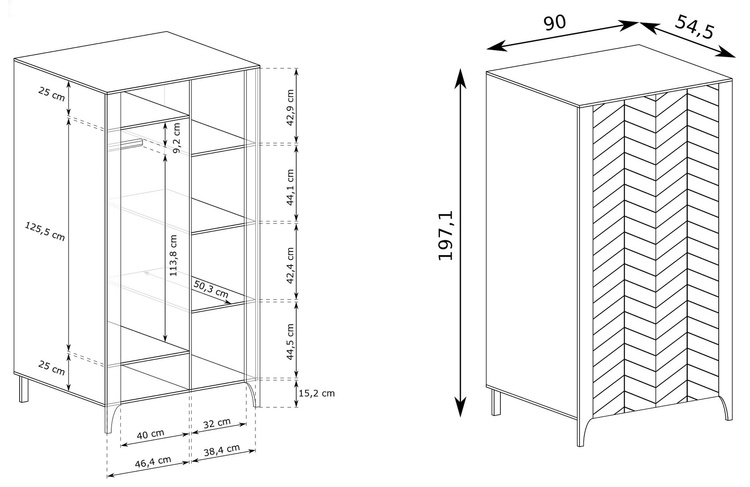 Díky šatní tyčí v jedné polovině a s vnitřními policemi v druhé