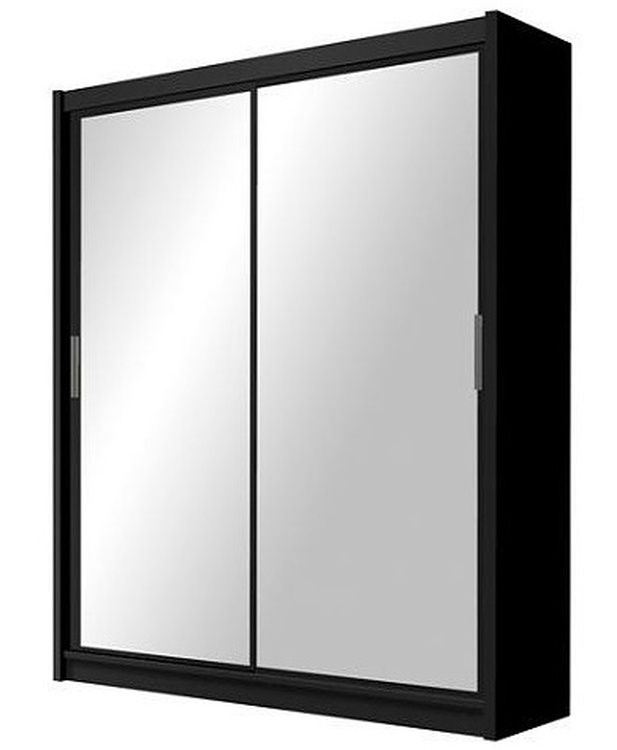Šatní skříň s posuvnými dveřmi v moderním provedení. Korpus je z kvalitního LTD v barvě černá. Skříň obsahuje praktické zrcadla. Uspořádání polic viz. perokresba. Dodáváme v demontovaném stavu.CASA 31040