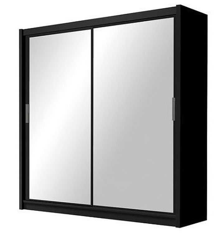 Šatní skříň s posuvnými dveřmi v moderním provedení. Korpus je z kvalitního LTD v barvě černá. Skříň obsahuje praktické zrcadla. Uspořádání polic viz. perokresba. Dodáváme v demontovaném stavu.CASA 31040