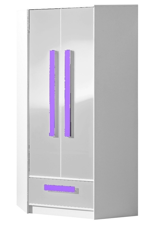 Rohová šatní skříň GULLIWER ze sektorové řady, která se vyznačuje netradičním zpracováním barev a originalitou úchytů. Tento styl nábytku zaujme každou mladší generaci. Skříň je vyrobena z kvalitní LTD desky hraněné ABS lištou. Korpus je v barvě bílá mat, dveře jsou barvě bílá lesk. Úchytky jsou v barvě fialové. Sektorový nábytek GULLIWER má široký výběr prvků, který Vám zaručí sestavit si dětský nebo studentský pokoj, ložnici či kancelář podle svých potřeb, přání a představ. Dodáváme v demontovaném stavu.CASA 23002