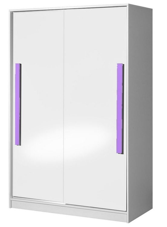 Šatní skříň s posuvnými dveřmi a čtyřmi policemi ze sektorové řady GULLIWER, která se vyznačuje netradičním zpracováním barev a originalitou úchytů. Tento styl nábytku zaujme každou mladší generaci. Skříň je vyrobena z kvalitní LTD desky hraněné ABS lištou. Korpus je v barvě bílá mat, posuvné dveře jsou barvě bílá lesk. Úchyty jsou v barvě fialové. Sektorový nábytek GULLIWER má široký výběr prvků, který Vám zaručí sestavit si dětský nebo studentský pokoj, ložnici či kancelář podle svých potřeb, přání a představ. Dodáváme v demontovaném stavu.CASA 23002