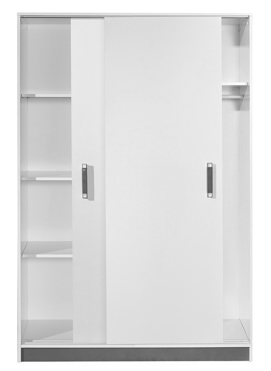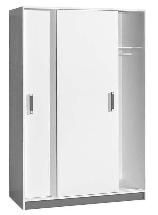 Šatní skříň s posuvnými dveřmi TRAFICO ze sektorové řady, která se vyznačuje netradičním zpracováním barev a originalitou úchytů. Tento styl nábytku zaujme každou mladší generaci. Skříň je vyrobena z kvalitní LTD desky hraněné ABS lištou. Korpus je v bílé matné barvě, doplňková barva je popel. Uvnitř skříně je šatní tyč a 4 police. Sektorový nábytek TRAFICO má široký výběr prvků, který Vám zaručí sestavit si dětský nebo studentský pokoj, ložnici či kancelář podle svých potřeb, přání a představ. Dodáváme v demontovaném stavu.CASA 23005