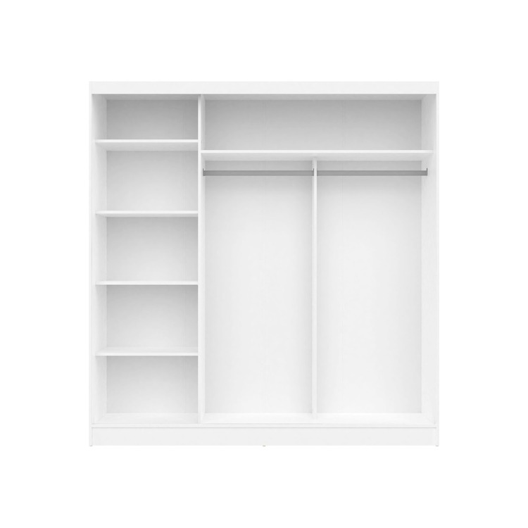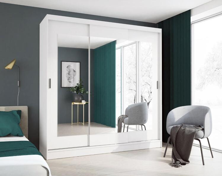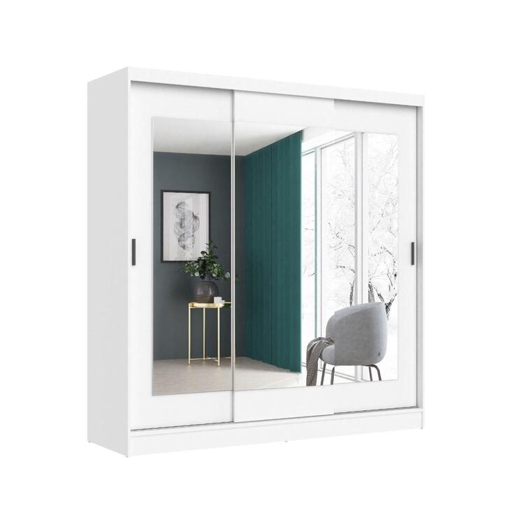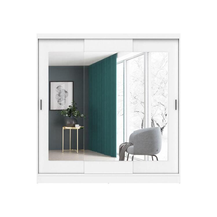Šatní skříň se třemi posuvnými dveřmi je vyrobena z kvalitní LTD v barevném provedení bílá. Uvnitř skříně jsou dvě šatní tyče a police. Jednotlivé dveře jsou doplněny zrcadly. Lamino je odolné vůči vysokým teplotám a poškrábání. Dodáváme v demontovaném stavu.CASA 85018