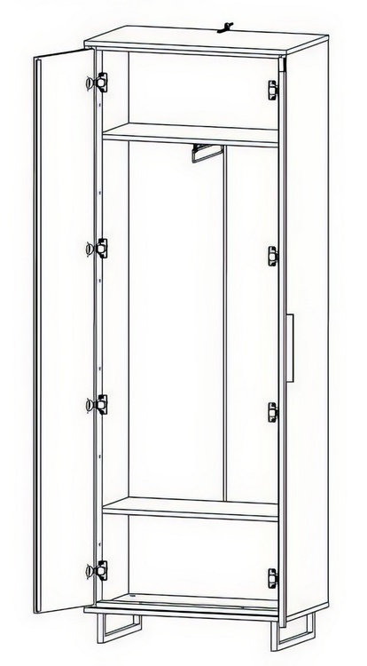Šatní skříň dvoudveřová v industriálním stylu je vyrobena z LTD desky, korpus je v barvě šedé, přední část dveří je doplněna lištami z přírodního dubového dřeva a také zrcadlem. Uvnitř skříně jsou police a držák na věšáky. Nohy jsou kovové černé. Nábytek disponuje teleskopickými pojezdy a systémem samodovíracích závěsů. Nabídka komponentů této sektorové řady umožňuje sestavit si nábytek dle vlastních představ. Dodáváme v demontovaném stavu.CASA 97060