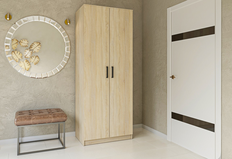 Jednoduchá šatní skříň, která se díky svým rozměrům vejde i do malých prostorů. Korpus i dveře jsou z kvalitní LTD desky v barvě dub sonoma. Nezvyklá výška 205 cm nabídne opravdu dostatek prostoru. Vnitřní rozložení nabízí polici a šatní tyč. Dodáváme v demontovaném stavu.CASA 83075