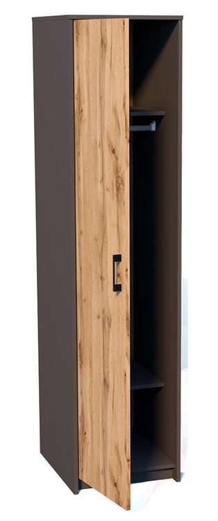Šatní skříň VIKA v jednoduchém, ale velmi praktickém provedení a moderním designu. Korpus i dvířka jsou z kvalitní LTD. Korpus je v barvě grafit, dvířka v barvě dub wotan. Lamino je odolné vůči vysokým teplotám, poškrábání a nárazům, hraněné ABS páskou. Jasně viditelná struktura dřeva.... více informací o zboží