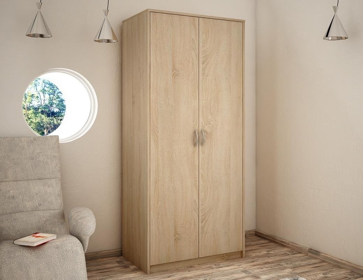 Šatní skříň v jednoduchém, ale velmi praktickém provedení a moderním designu. Korpus i dvířka jsou z kvalitní LTD v barvě dub sonoma. Lamino je odolné vůči vysokým teplotám, poškrábání a nárazům, hraněné ABS páskou. Jasně viditelná struktura dřeva. Dodáváme v demontovaném stavu.CASA 53017