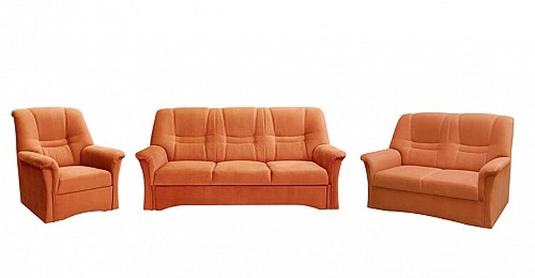 Klasická sedací souprava, která se skládá z trojsedu, dvojsedu asamostatného křesla.