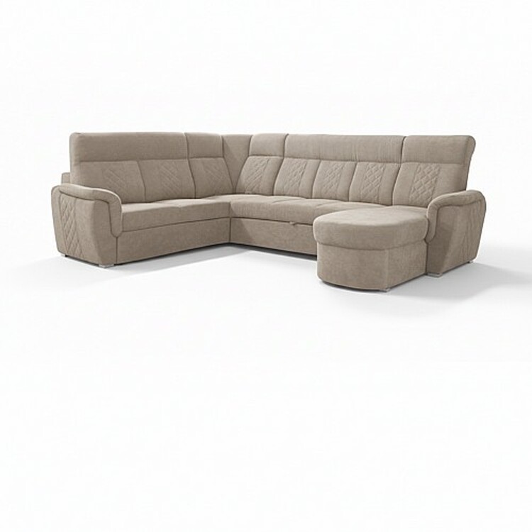 Sedací souprava BODRUM II-ROH-III-OT nabízí prostorný rohový designs funkcí spaní a úložným prostorem. Díky kombinaci pružin bonell avlnitých pružin zajišťuje pohodlné sezení