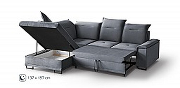 Sedací souprava BOUNTY „L“ je skvělým řešením pro každodennípohodlí, které se hodí do středních i větších obývacích prostor.Tento oblíbený model vyniká nejen svým nadčasovým designem, alei promyšlenou funkčností. Je ideální pro relaxaci, ale díky svérozkládací funkci se snadno přemění na pohodlné lůžko o rozměrech137 × 197 cm, což je perfektní pro návštěvy nebo víkendovépřespání.