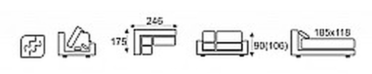 Sedací souprava CALYMNO LUX je široká 246, dlouhá 176 a vysoká mezi