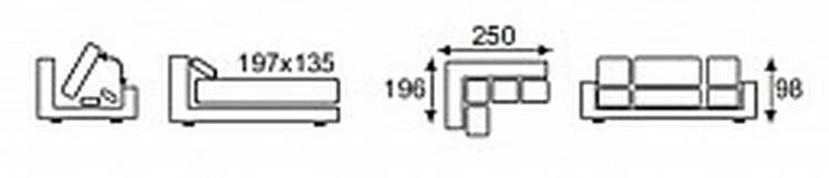 Pohodlné sezení zabezpečují kvalitní vysoce elastické HR pěny napružině vlnovec v sedáku. Nohy – černý kov. Levé nebo pravéprovedení.