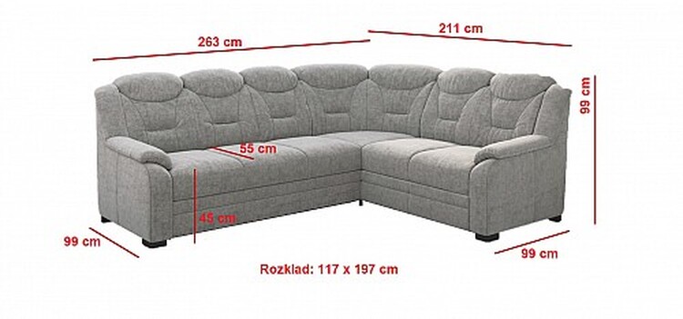 4,5 cm. Souprava má čalouněná záda, což znamená, že není vhodná