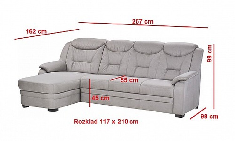 Sedák je vyplněn kvalitní PUR pěnou a vlnitými pružinami, kterézajišťují komfort i při dlouhodobém sezení. Pokud potřebujete dalšílůžko pro hosty, stačí sedačku rozložit a získáte spací plochuo rozměrech 117 × 210 cm.