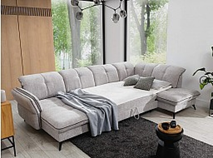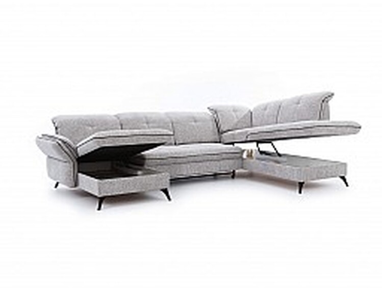 Tato rozkládací sedací souprava ve tvaru U s úložným prostorem a