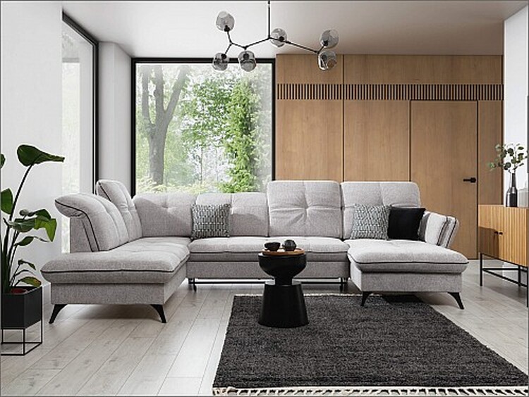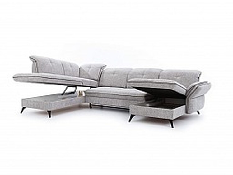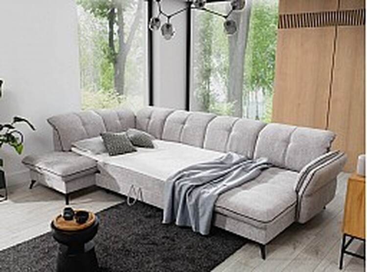 Tato rozkládací sedací souprava ve tvaru U s úložným prostorem a