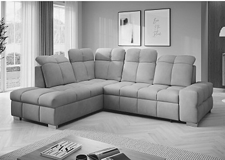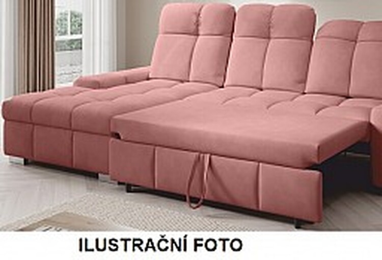Sedací souprava PRESTIGE „L“ – rozkládací s úložným prostorem.Regulovatelné opěrky hlavy – zahlavníky.