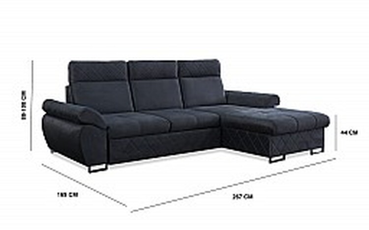 267 × 169 cm a výškou sedu 44 cm poskytuje dostatek prostoru pro