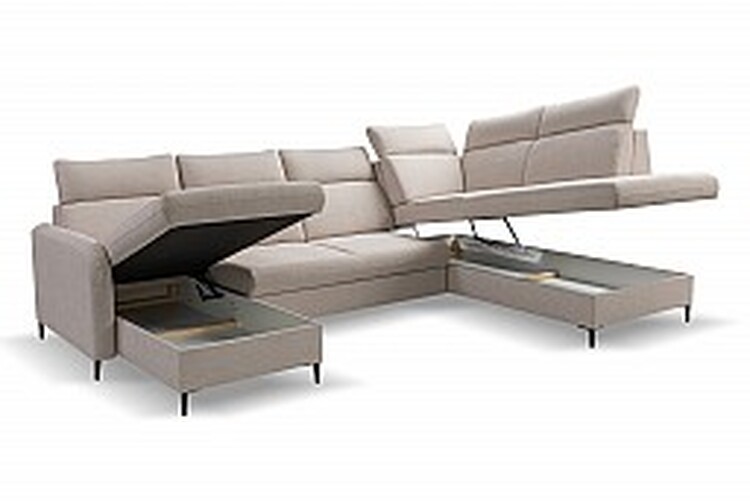 Sedací souprava TORUŇ XL ve tvaru U je dokonalou volbou pro velké rodinynebo pro ty, kteří často pořádají společenské večery. Díkyprostornému designu poskytuje dostatek místa pro pohodlné sezení arelaxaci.