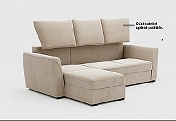Sedací souprava má čalouněná záda a je vhodná do prostoru. Rozklad jeočalouněn potahovou látkou. Odnímatelné zádové opěrky.