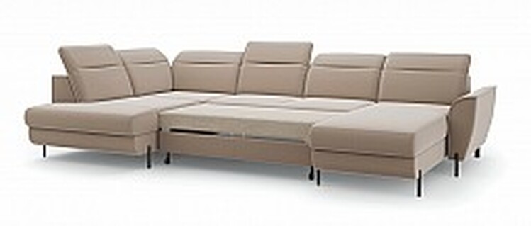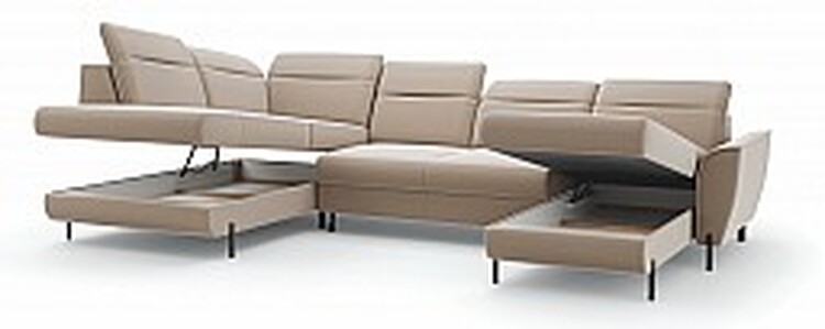 Sedací souprava VERANO UP-2F-OT ve tvaru U, rozkládací, s úložnýmprostorem a regulovatelné záhlavníky.