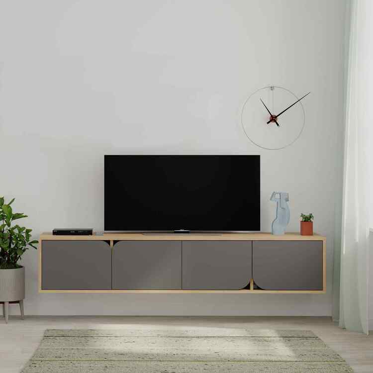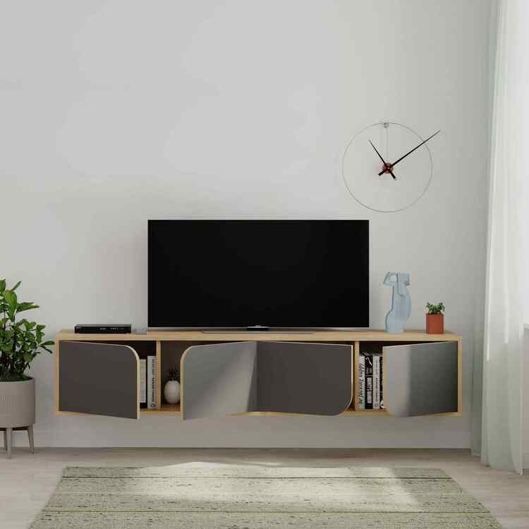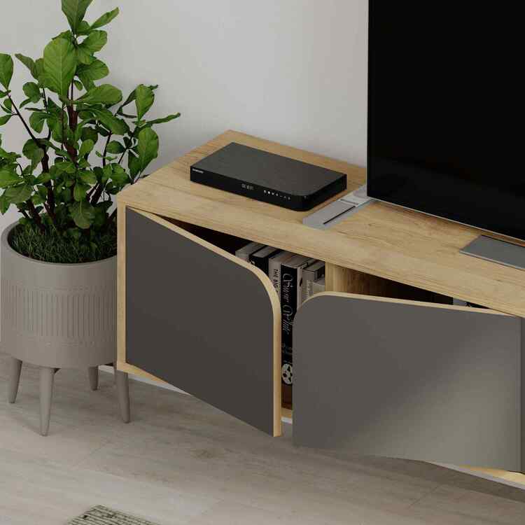 Objevte TV stolek – ideální řešení pro všechny, kteří hledají kombinaci funkčnosti a designu. Elegantní kombinacedubu a antracitu dodá vašemu obývacímu pokoji jedinečný vzhled.