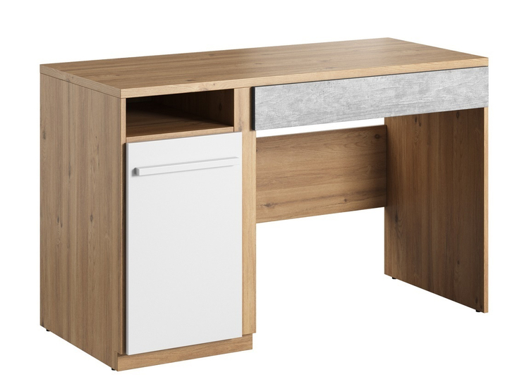 Sestava dětského pokoje v moderním stylu. Korpus je vyroben z desky LTD v barvě dub nash, dvířka a zásuvky jsou vyrobeny z desky LTD v kombinaci barev šedá/bílá. Sestava se skládá z těchto komponentů (Š x V x H cm) – skříň třídveřová (150 × 191 × 51 cm),pracovní stůl (120 × 76 × 55 cm),... více informací o zboží