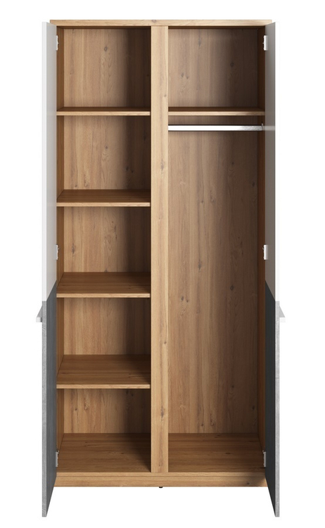 Sestava dětského pokoje v moderním stylu. Korpus je vyroben z desky LTD v barvě dub nash, dvířka a zásuvky jsou vyrobeny z desky LTD v kombinaci barev šedá/bílá. Sestava se skládá z těchto komponentů (Š x V x H cm) – skříň dvoudveřová (90 × 191 × 51 cm),regál (90 × 161 × 41 cm),komoda (125 ×... více informací o zboží