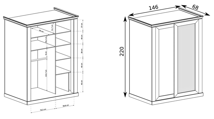 Sestava nábytku do ložnice v rustikálním stylu. Nábytek je vyroben z kvalitního lamina ohraničeného ABS páskou v barvě dub kraft zlatý. Sestava se skládá z těchto položek (Š x V x H cm) – šatní skříň (146 × 220 × 68 cm),komoda (114 × 96 × 42 cm),postel (205 × 102 × 176 cm),noční stolek (39... více informací o zboží