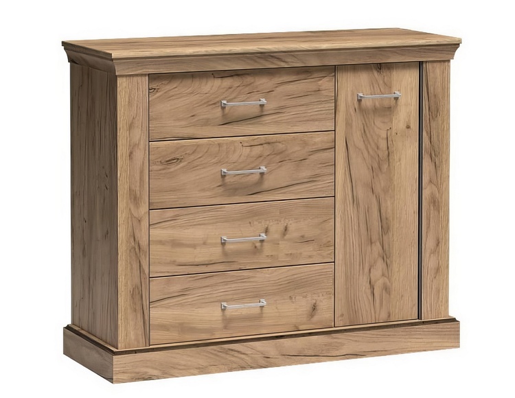 Sestava nábytku do ložnice v rustikálním stylu. Nábytek je vyroben z kvalitního lamina ohraničeného ABS páskou v barvě dub kraft zlatý. Sestava se skládá z těchto položek (Š x V x H cm) – šatní skříň (146 × 220 × 68 cm),komoda (114 × 96 × 42 cm),postel (205 × 102 × 176 cm),noční stolek (39 × 50 × 37 cm) a zrcadlo (126 × 77 × 5,5 cm). Postel dodáváme včetně roštu, bez matrace. Doporučený rozměr matrace je 160 × 200 cm nebo 2 ks 80 × 200 cm. Kolekce nábytku v sobě spojuje jednoduchost, krásný vzhled a funkčnost. Kolekce se skládá z mnoha prvků a tento široký výběr vám zaručí sestavit si nábytek podle svých vlastních představ a přání. Dodáváme v demontovaném stavu.CASA 71001