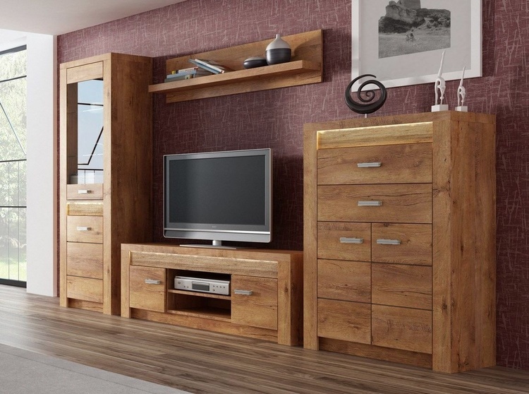 Obývací sestava. Tento systém je exkluzivní kolekce navržena v moderním duchu. Celá řada se vyznačuje elegancí a jednoduchými tvary, které zaručují plné využití prostoru. Nábytek je vyroben z kvalitního lamina s ABS hrany ( 0,5–0,8 mm ),úchyty jsou z kovu. Barevné provedení je jasan světlý.... více informací o zboží