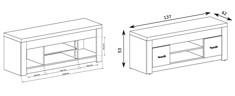 Obývací sestava. Tento systém je exkluzivní kolekce navržena v moderním duchu. Celá řada se vyznačuje elegancí a jednoduchými tvary, které zaručují plné využití prostoru. Nábytek je vyroben z kvalitního lamina s ABS hrany ( 0,5–0,8 mm ),úchyty jsou z kovu. Barevné provedení je jasan světlý. Sestava se skládá ( šxhxv ) – vitrína ( 56 × 42 × 192 cm ),komoda ( 76 × 42 × 127 cm ),tv stolek ( 137 × 42 × 53 cm ) a police ( 120 × 18 × 32 cm ). Nábytek neobsahuje LED osvětlení v ceně, možnost dokoupení. V naší nabídce naleznete další sortiment z řady. Dodáváme v demontovaném stavu.CASA 71007