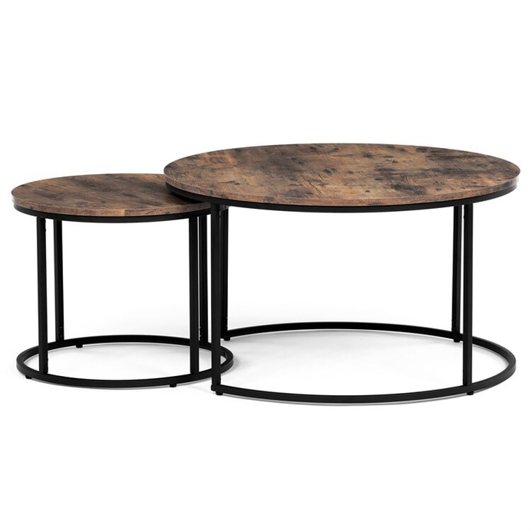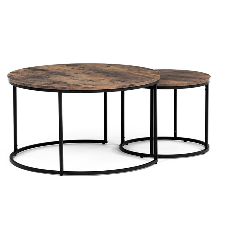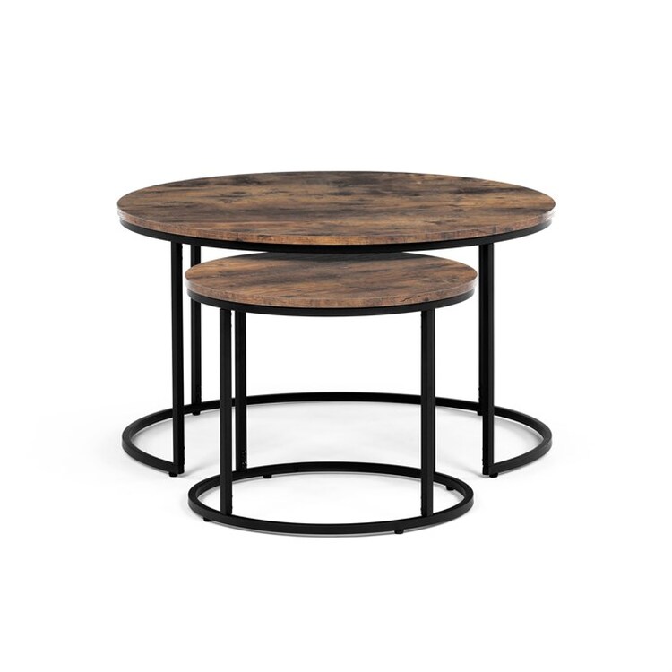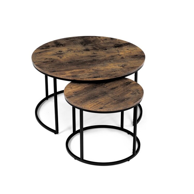 Set 2 ks konferenčních, ale i přístavných nebo odkládacích stolů přinese do vašeho domova nejen praktičnost, variabilitu, ale také industriální šarm. Stolky můžete rozmístit jednotlivě po interiéru, kde Vám vytvoří zajímavé odkládací prvky v různých výškových hladinách. A nebo společně povytažené, kde vytvoříte velkou odkládací plochu ve tvaru čísla 8. Velkou výhodou je možnost zasunutí stolků do sebe, což oceníte při úklidu, skladování nebo při potřebě většího prostoru. A jistě zaujmou nejen již uvedenou praktičností, ale také svým stroze čistým a nadčasovým designem.Kulaté desky z MDF v dekoru staré dřevo harmonicky doplňuje kovová konstrukce po jejich obvodu v černém matném práškovém nástřiku. Ta tvoří rovněž nohy a celkově stolky zpevňuje. Na spodní liště jsou umístěny černé plastové kluzáky, které zabraňují poškození povrchu podlahy při přesunech stolků.Deska o tloušťce 1,5 cm má průměr velmi příjemných 80 cm, menší 50 cm, výška stolů je 46 a 41 cm4. Konstrukce je čtvercového průřezu. Nosnost jednotlivého stolku je do 30 kg.