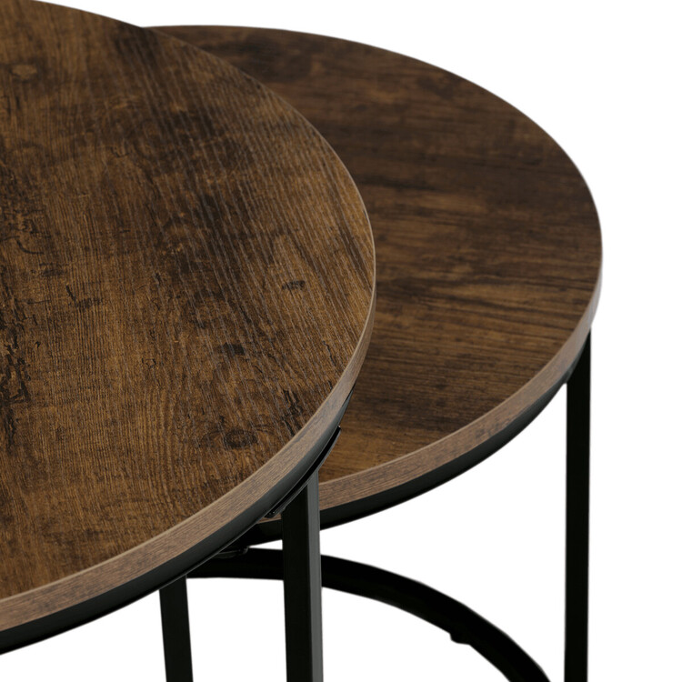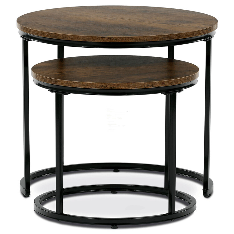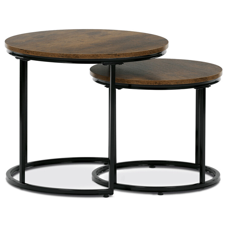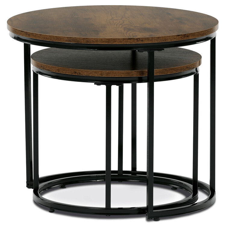 Sada dvou odkládacích stolků značky Autronic spojuje moderní design a funkčnost. Kulaté desky v přírodním dekoru skvěle kontrastují s černými kovovými nohami, což vytváří elegantní industriální vzhled. Stoly lze snadno zasunout pod sebe, což šetří prostor a zvyšuje jejich praktické využití.... více informací o zboží