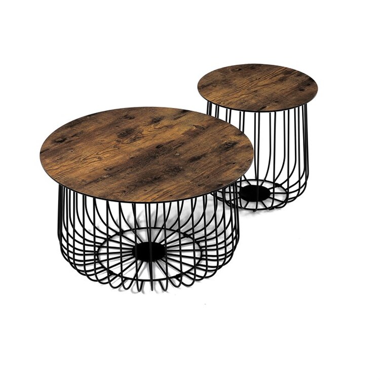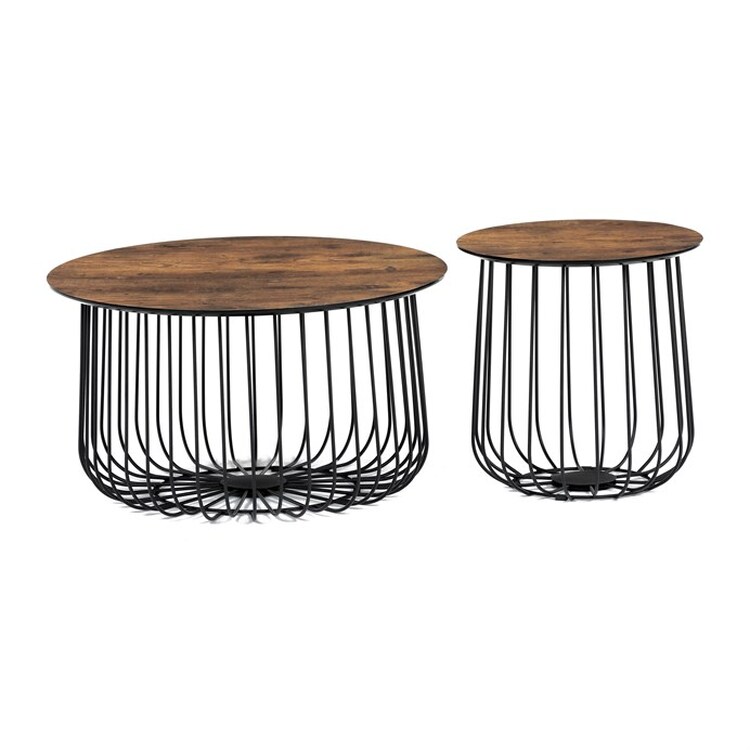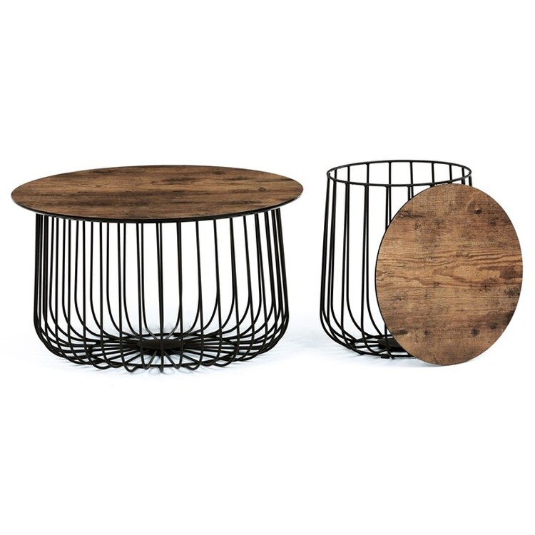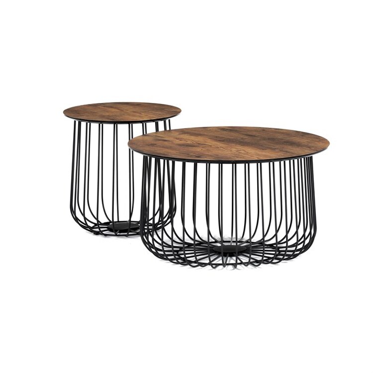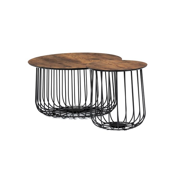 Set 2 ks variabilních a multifunkčních stolků, které můžete využít nejen jako konferenční set, ale skvěle poslouží i jednotlivě jako odkládací nebo přístavné. A to není vše. Po odklopení desky může stolek sloužit jako úložiště nebo odkladiště jistě potřebných věcí v domácnosti, které musíte mít stále při ruce anebo jen jako pokorný dekorativní prvek v interiéru, na který postavíte třeba jen květinu. Variabilita je opravdu neomezená a stačí zapojit fantazii. Co třeba dát dovnitř stolků vlastní květinové aranže či jinak vydekorovat anebo umístit příhodnou živou květinu. Pak už se stačí jen kochat vlastní tvorbou a se zalíbením sledovat závistivé pohledy návštěv.Stolky jsou v lehkém minimalistickém designu ve velmi oblíbeném industriálním stylu. Desky jsou z MDF tl. 18 mm, ze spodní části v černém matu se sraženou obvodovou hranou a v horní pohledové v 3D dekoru staré dřevo. Drátěná kovová konstrukce ze subtilních kulatých profilů je v černém matu, povrchová úprava je kvalitním práškovým vypalovacím lakem. Ve spodní části jsou gumové patky, které zamezují poškození povrchu tvrdých podlah a zároveň zabraňují i nechtěnému posunu stolků.Větší stolek má průměr desky 60 cm a výšku 34 cm, vyšší má průměr 37 cm a výšku 39 cm. Nosnost stolků je do 30 kg každý.Stolky jsou velmi nenáročné na údržbu, stačí je otřít vlhkým hadříkem s vhodným čistícím prostředkem a už jen vysušit. Tento klad jistě ocení každý, a to nejen při úklidu. A dalším skvělé plus je, že zcela odpadá složitá montáž. Jen opatrně vybalíte, nasadíte desky a stolky jsou připraveny Vám sloužit dlouhá léta a vnést do Vašeho interiéru šarm industriálního stylu.