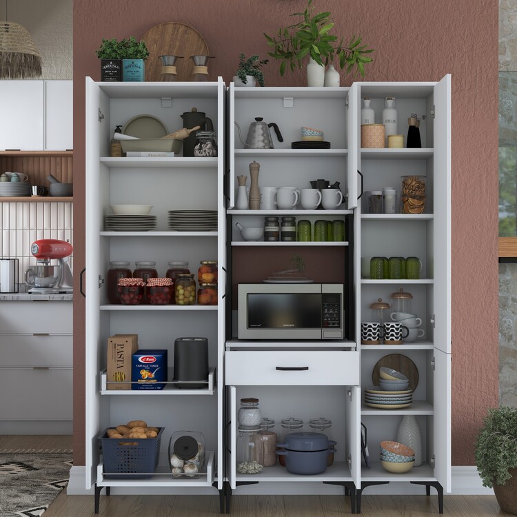 Policová skříň je ideálním řešením pro moderníkuchyň, kde styl a funkčnost hrají hlavní roli. Jejískandinávský design a čisté bílé provedení přinášejí eleganci a uspořádanost do každého interiéru.