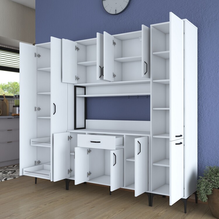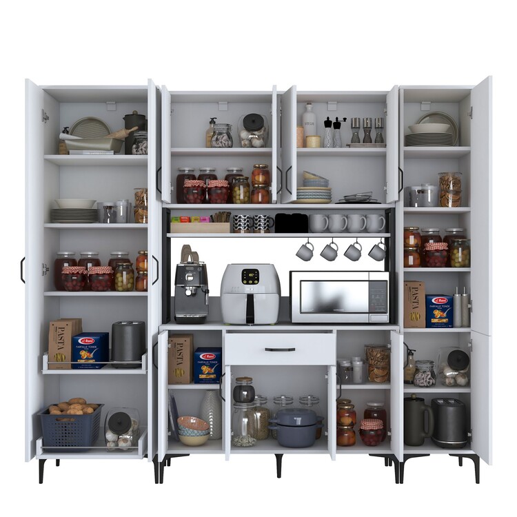 Policová skříň přináší stylový a praktický způsob, jak uspořádat váš kuchyňský prostor. Díky svémuskandinávskému designu a čistě bílému provedení je nejen funkční, ale také esteticky atraktivní.