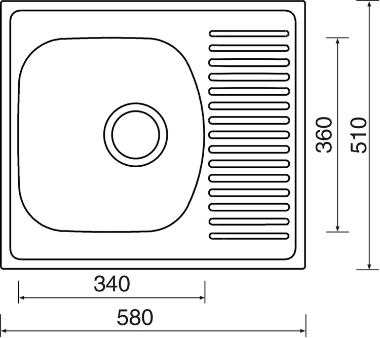 • Dřez je vyroben z chromniklové oceli CrNi 18/10• Matné provedení• Pro skříňku od 400/450 mm• Tloušťka nerezu 0,5 mm• Rozměr dřezu 580 × 510 mm• Rozměr vaničky 340 × 360 mm• Hloubka 150 mm• Výpusť 3 1/2" s velkou výpustí• Pro čištění dřezu doporučujeme čistící pastu Sinks