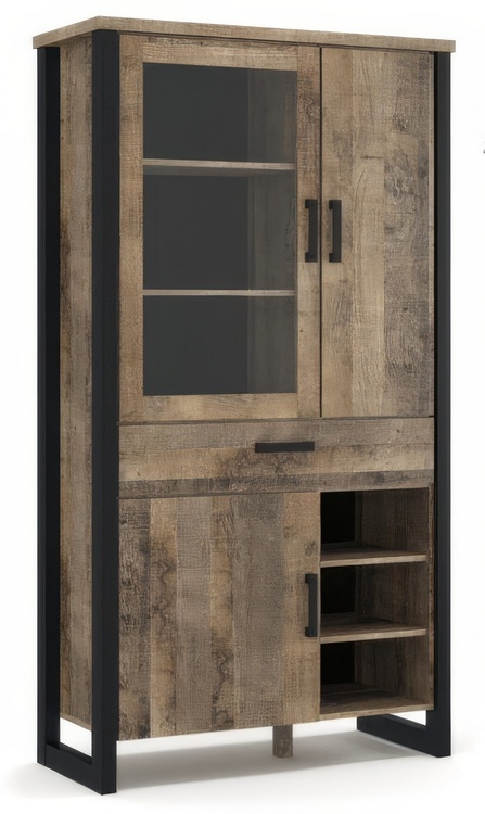 Vitrína široká se 2 dvířky a zásuvkou v industriálním stylu je vyrobena z LTD desky v barevném provedení dub grange. Stabilní konstrukce s nožkama je z desky MDF černé barvy. Úchyty jsou také černé. Nabídka komponentů této sektorové řady umožňuje sestavit si nábytek dle vlastních představ.... více informací o zboží