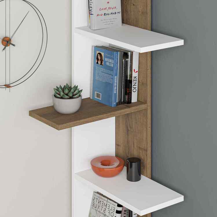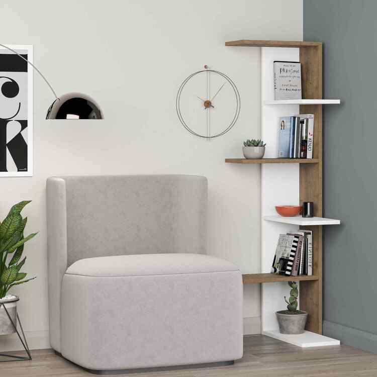 – Rohový Regál v Harmonii Bílé a Ořechu Hit