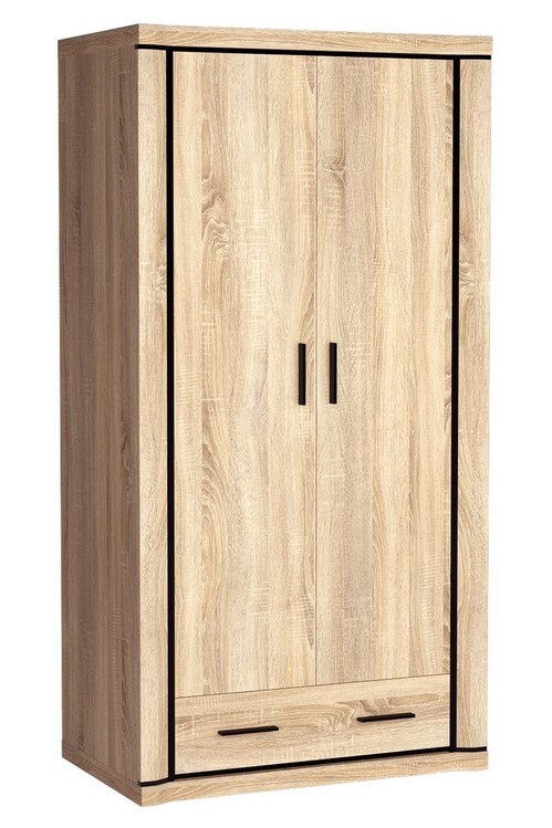 Šatní skříň 2-dveřová ze sektorové řady má šatní tyč, dole je jedna zásuvka. Má zajímavé provedení v podobě netradičně vyřezávaných vrchních a spodních desek. Systém je exkluzivní kolekce navržena v moderním duchu. Celá řada se vyznačuje masivním vzhledem a jednoduchými tvary. Nábytek je vyroben z kvalitního LTD s lištami z MDF, součástí nábytku jsou desky 48 mm, vše opatřeno ABS páskou. Barevné provedení – dub sonoma. Má široký výběr komponentů, díky kterým lze vybavit nejen obývací pokoj, ale i ložnici nebo kancelář. Dodáváme v demontovaném stavu.CASA 71003